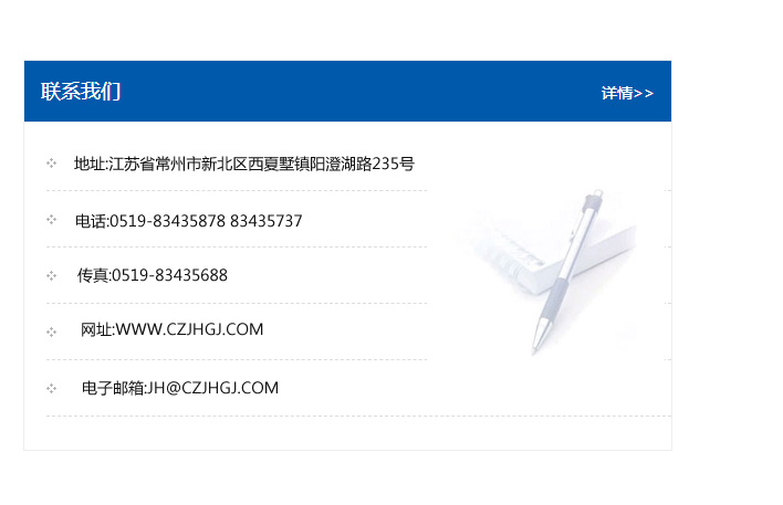 傳真:0519-83435688    郵編:213135    網址:WWW.czjhgj_com.guanqunmoju.com    電子郵箱:JH@czjhgj_com.guanqunmoju.com